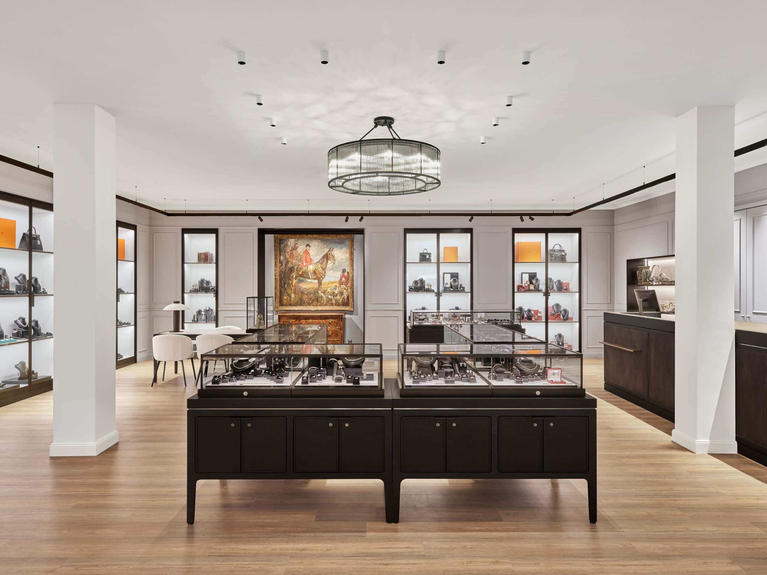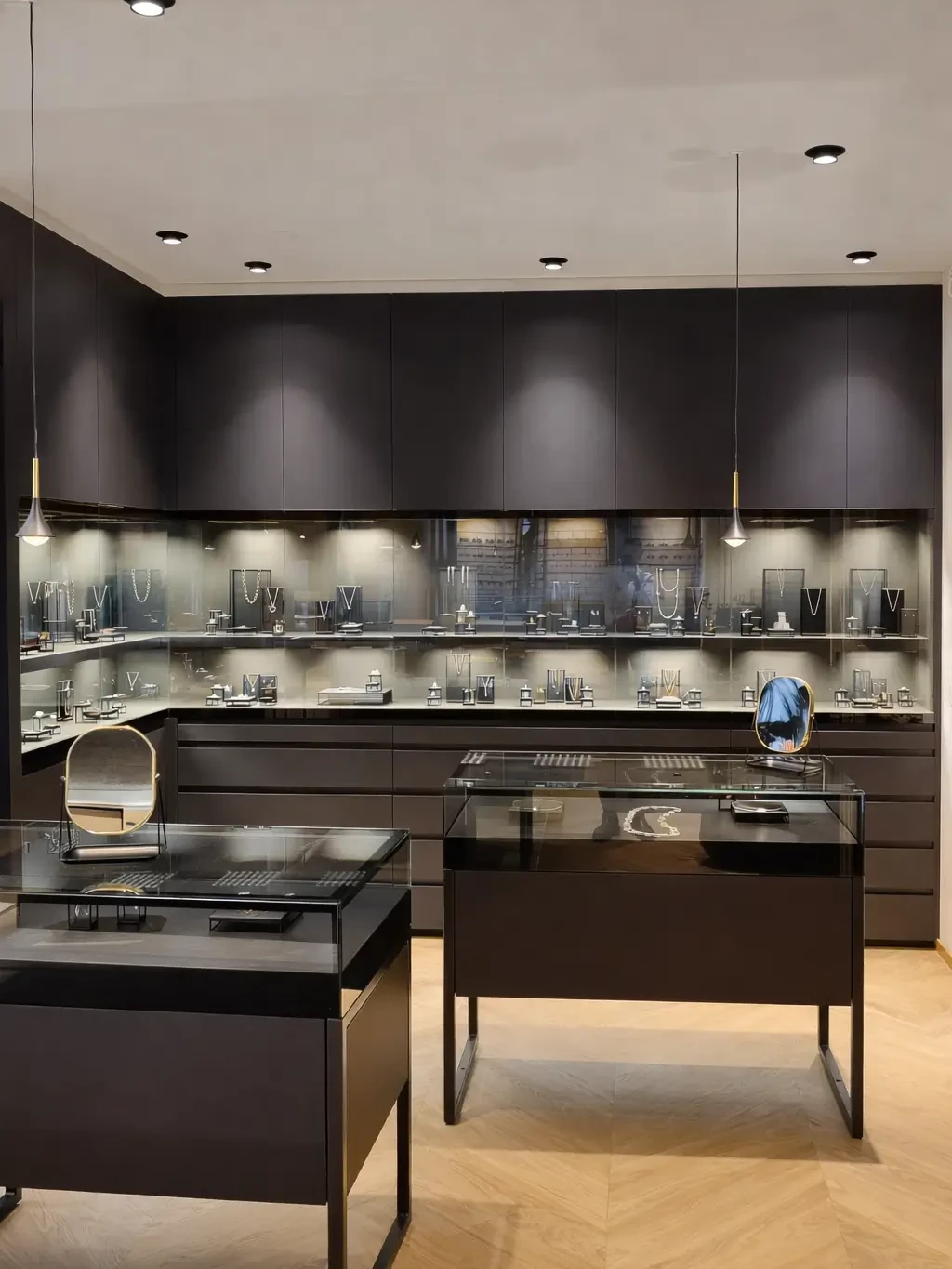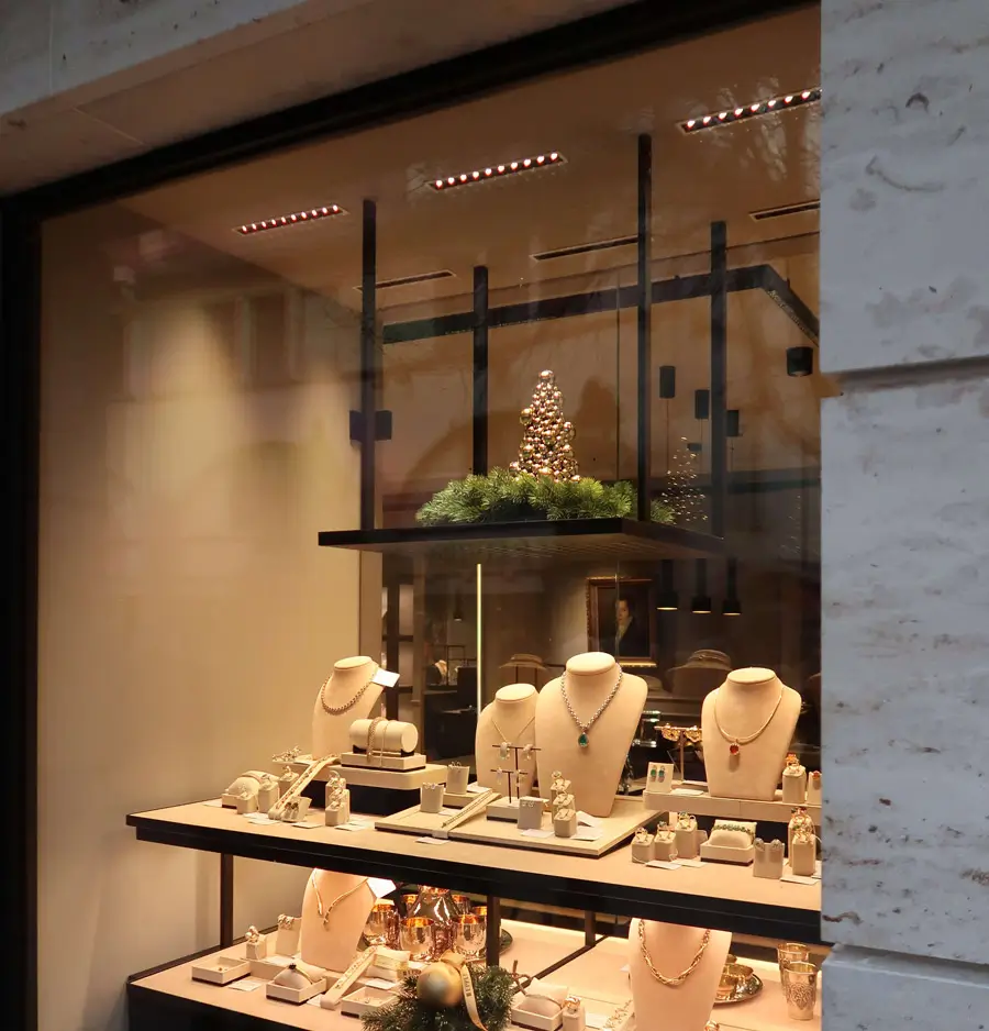 Darum stellen wir genau die entscheidenden Elemente zur Verfügung: Vitrinen mit perfektem Licht sowie durchdachte Lichtlösungen für Raum, Spiegel, Beratungsplätze und Schaufenster – Beleuchtung, die Schmuck und Uhren zum Strahlen bringt und aus einem Laden einen besonderen Ort macht. Die Grundgestaltung sowie den Ladenbau überlassen wir gerne Ihren Partnern oder organisieren es für Sie.